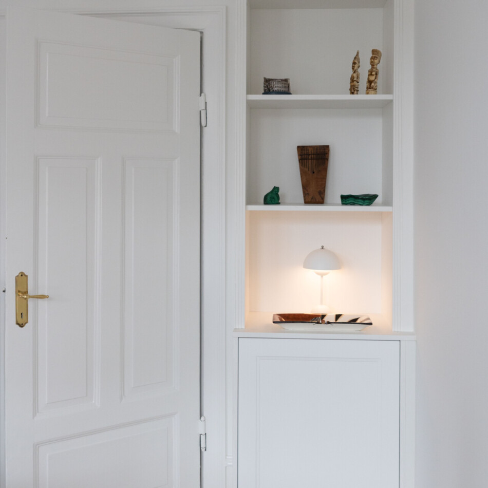 Håndmalet opbevaringsmøbel på mål, med små snedkerdetaljer.