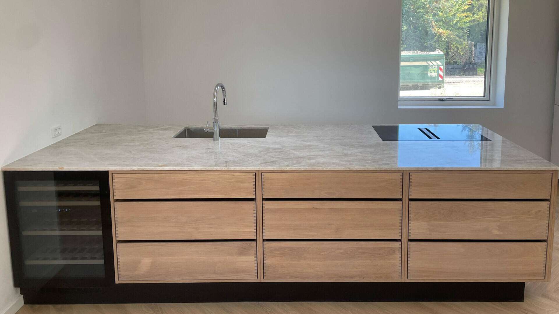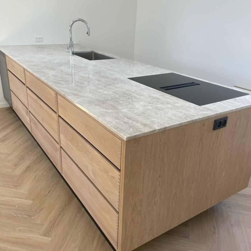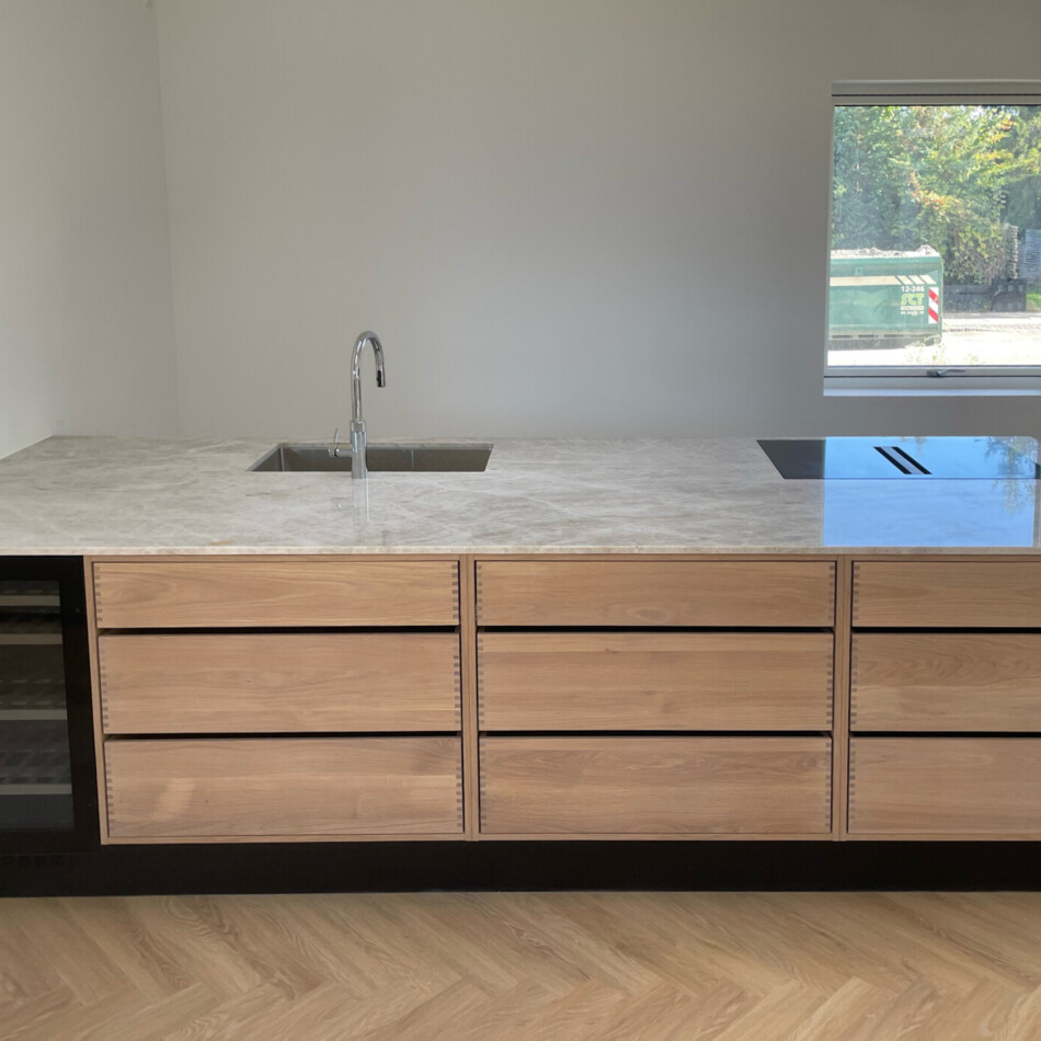 Snedkerkøkken med tappede skuffer