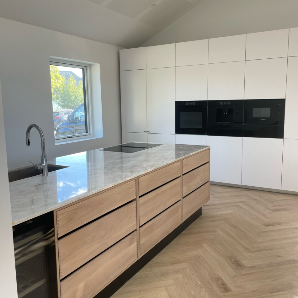 Snedkerkøkken med indfræste greb